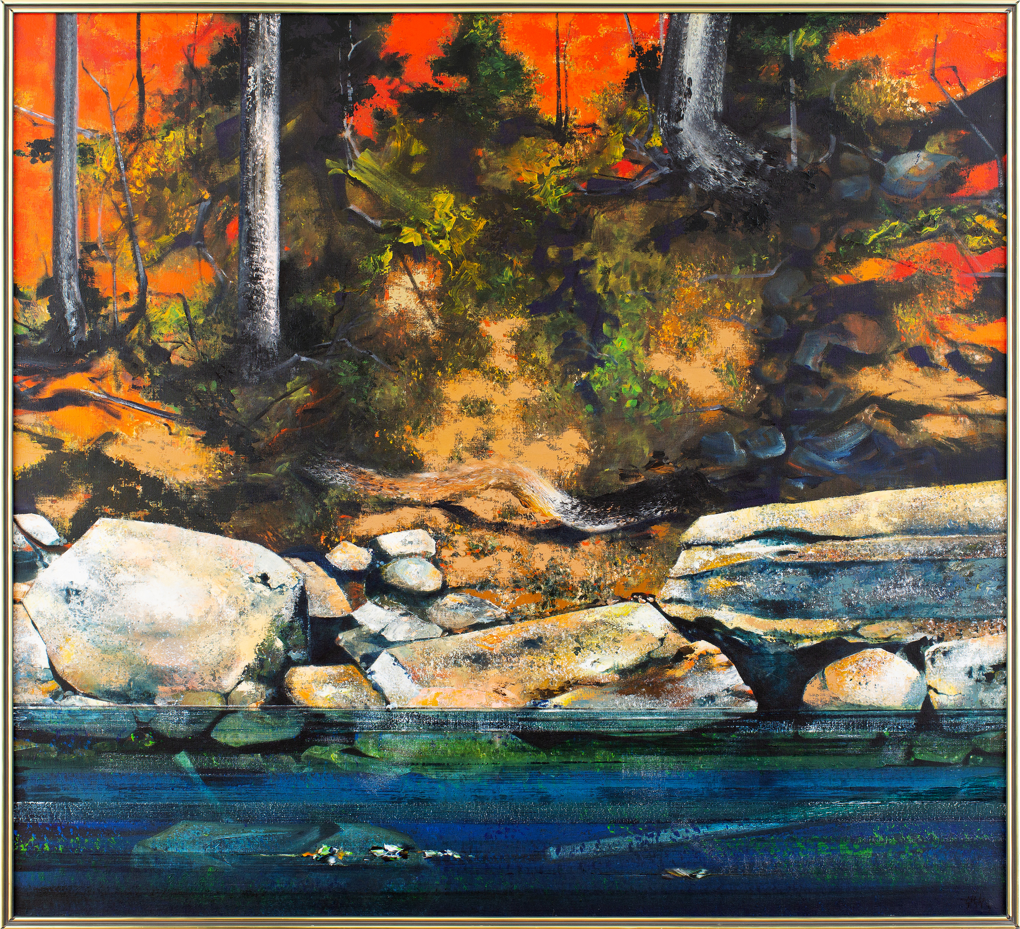 Roll your mouse over the image to zoomGLEGHORNFLASH FLOOD WATERHOLE - EATING HOUSE CREEK, FLINDERS RANGES - 1984164 x 179 (Frame: 168 x 183.5) cm)