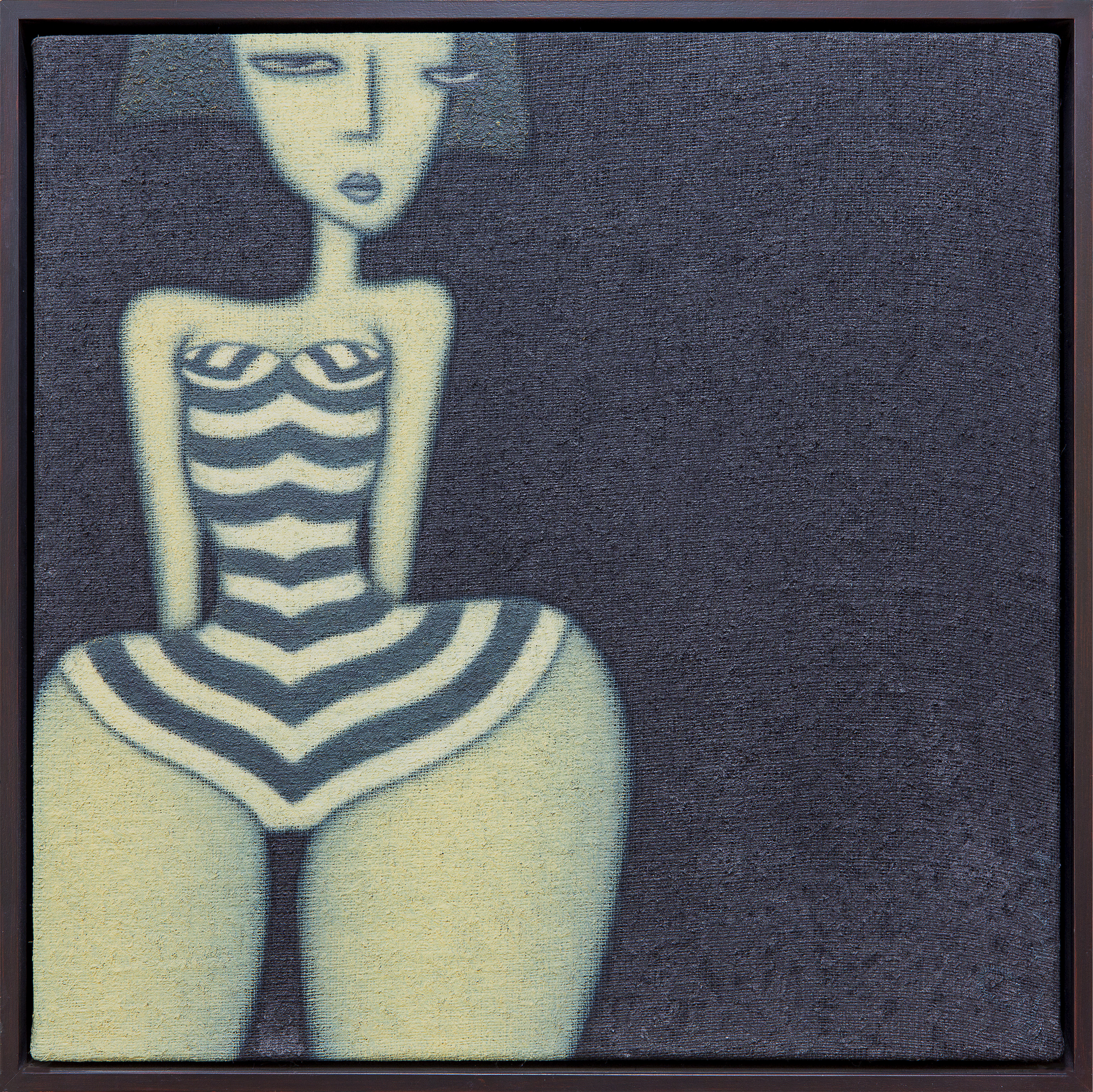Provenance: Private collection, Melbourne. Bathing Beauty is a luminous celebration of confidence and sensuality, with Laity’s signature hessian texture and restrained palette transforming the classic bather into a contemporary icon. This work can be seen as an affirmation of self-assurance and comfort in one’s own skin, inviting viewers to embrace the joy found in everyday moments of relaxation.Larger image available for viewing below, via link. |