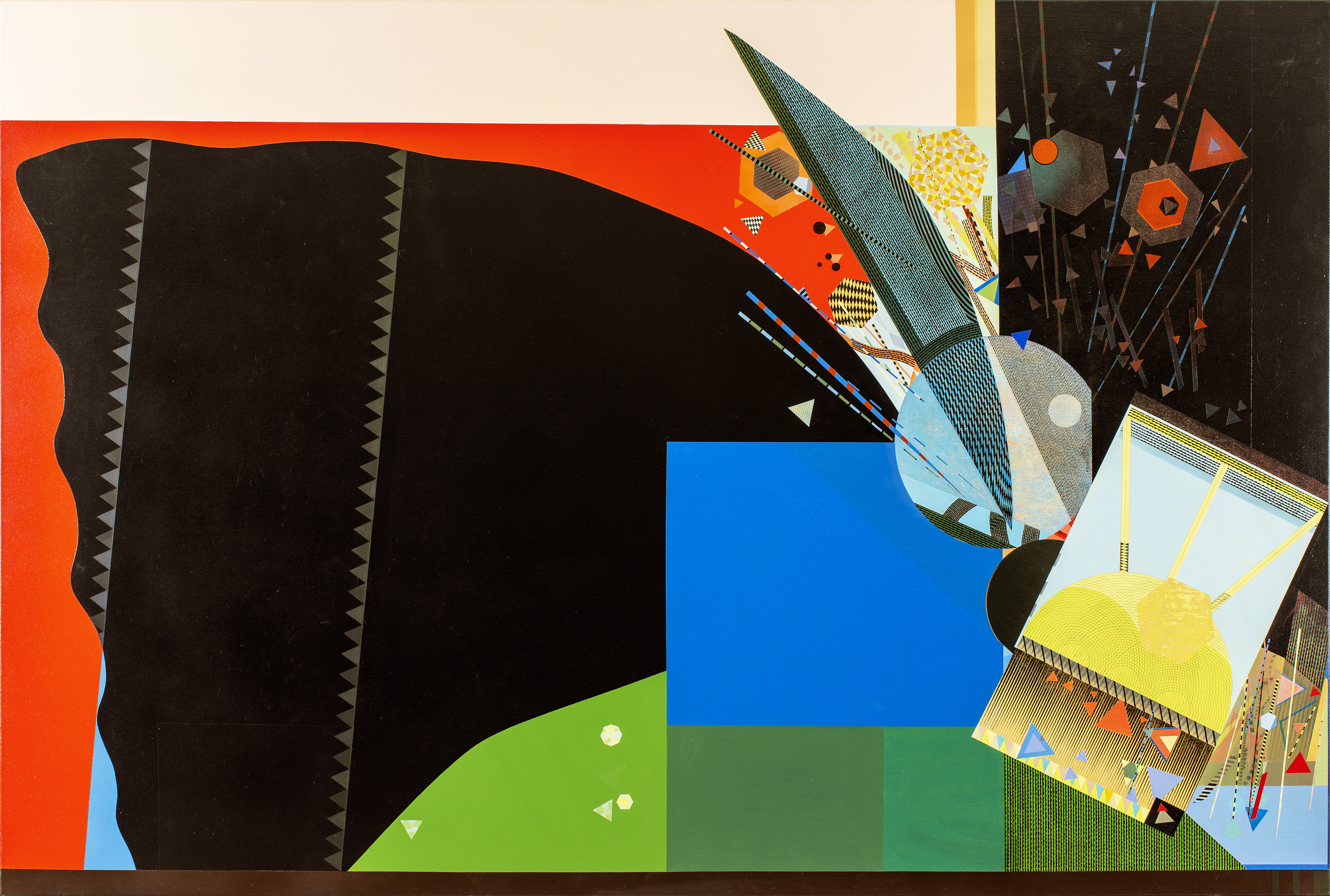 Acrylic on Caravaggio Linen; Signed & Dated lower right; Signed, Dated & Titled "Young & Old Besieged Each Night, Computer Dracula Poised To Bite" verso.