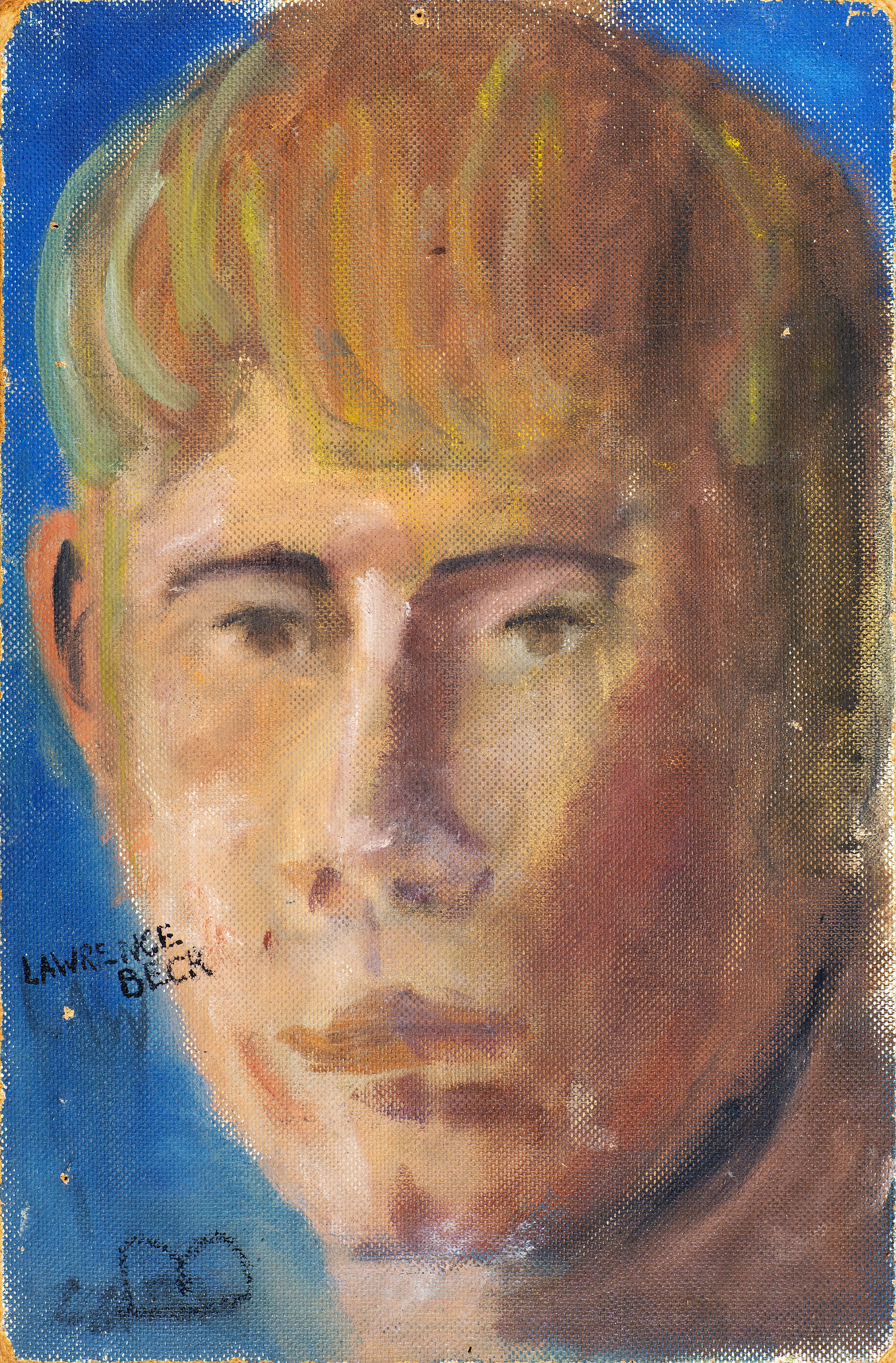 Oil & Hessian on board; Signed "Jeffrey Smart" lower right; Double sided painting withportrait of Lawrence Beck verso.